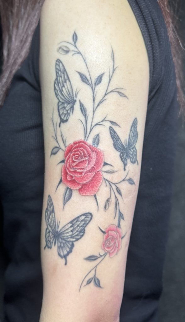 蝶 薔薇 タトゥー tattoo |岡山 倉敷 タトゥー